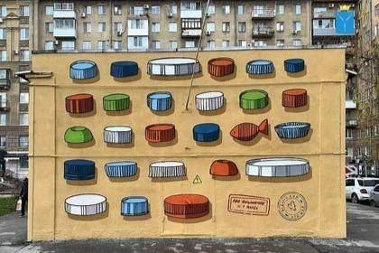 В центре Саратова нарисовали мурал против пластиковых крышекОн появился на площади Кирова