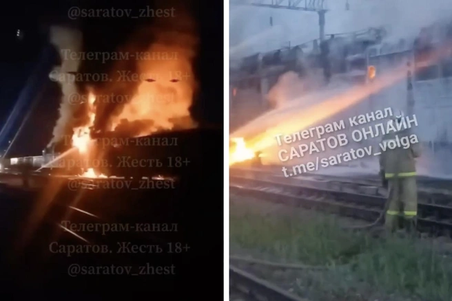 Прошедшей ночью в Саратовской области, в Красноармейском районе на станции Россоша, произошло возгорание локомотива. В социальных сетях появились видеозаписи, на которых запечатлены пожарные, активно тушащие вагоны состава.
